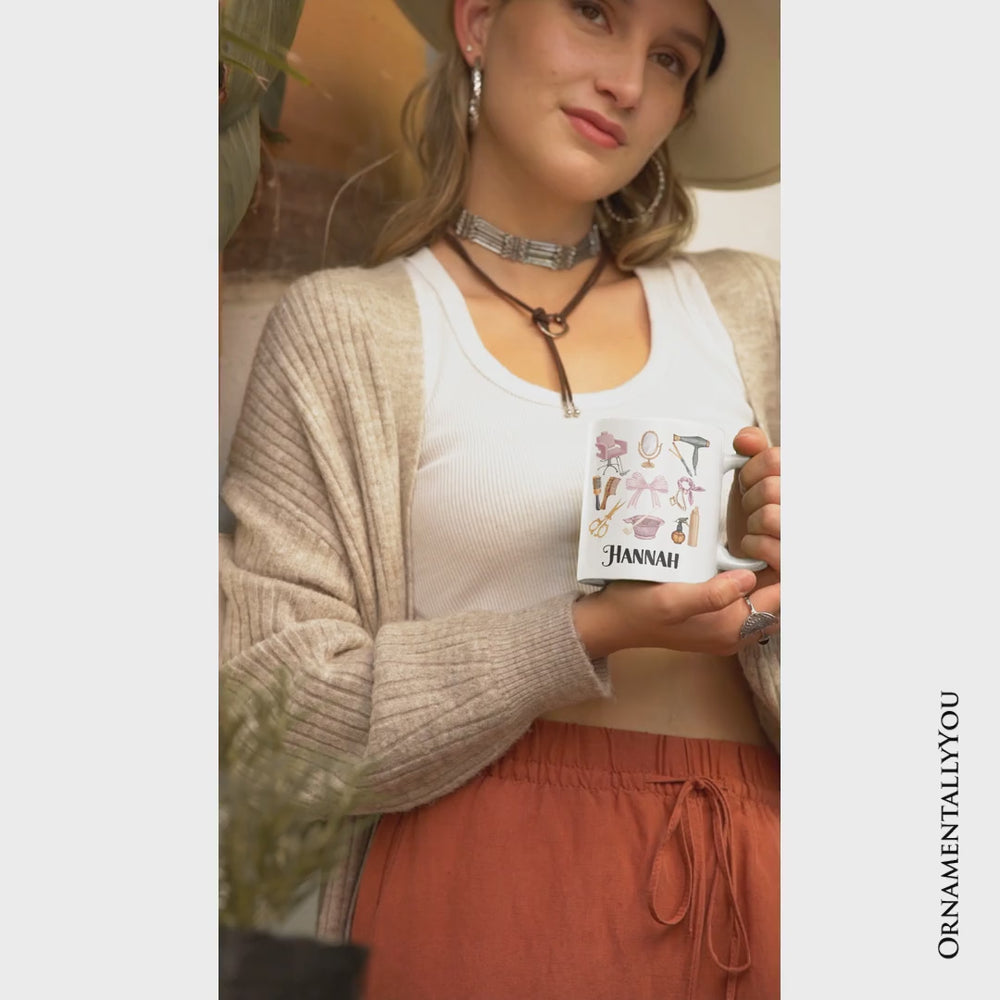 Hairstylist Coquette Aesthetic Personalized Mug, Pink Hair Dresser Gift with Custom Name