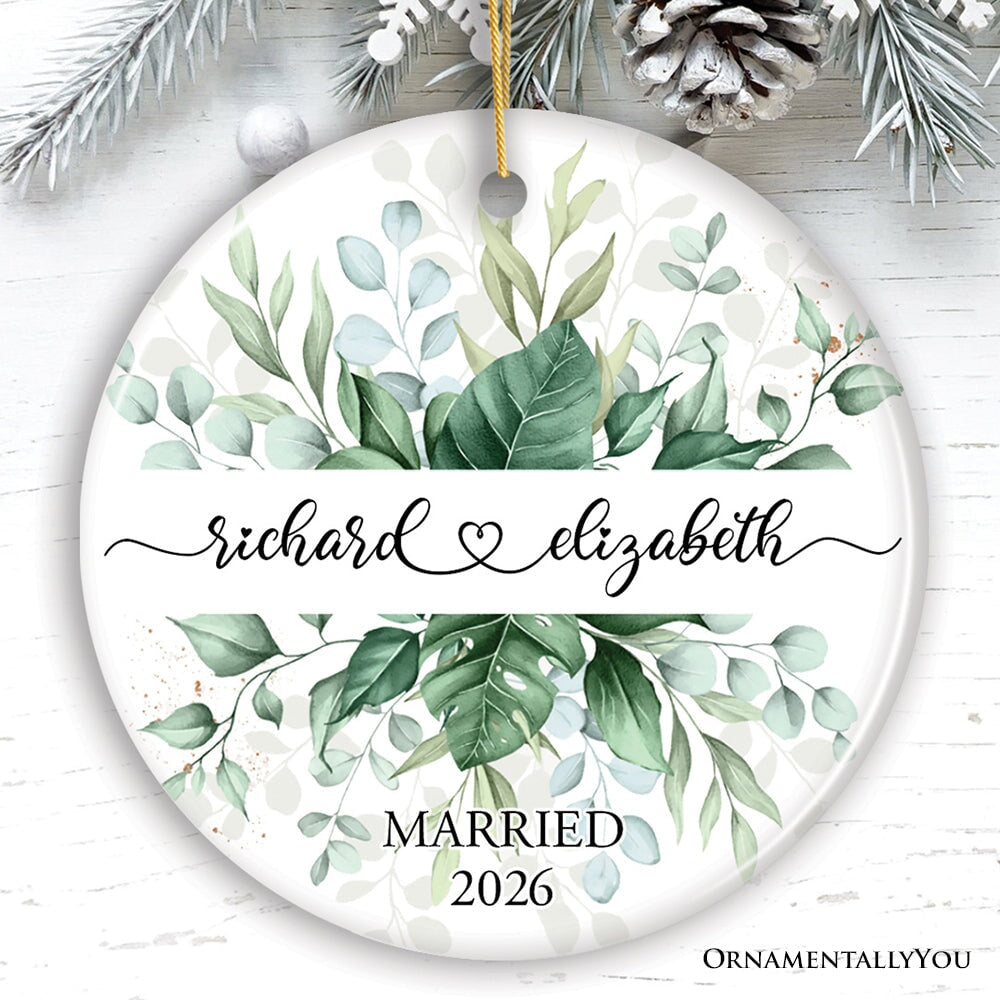 Elegant Personalized Wedding Ornament, Married or Engaged Couple Gift