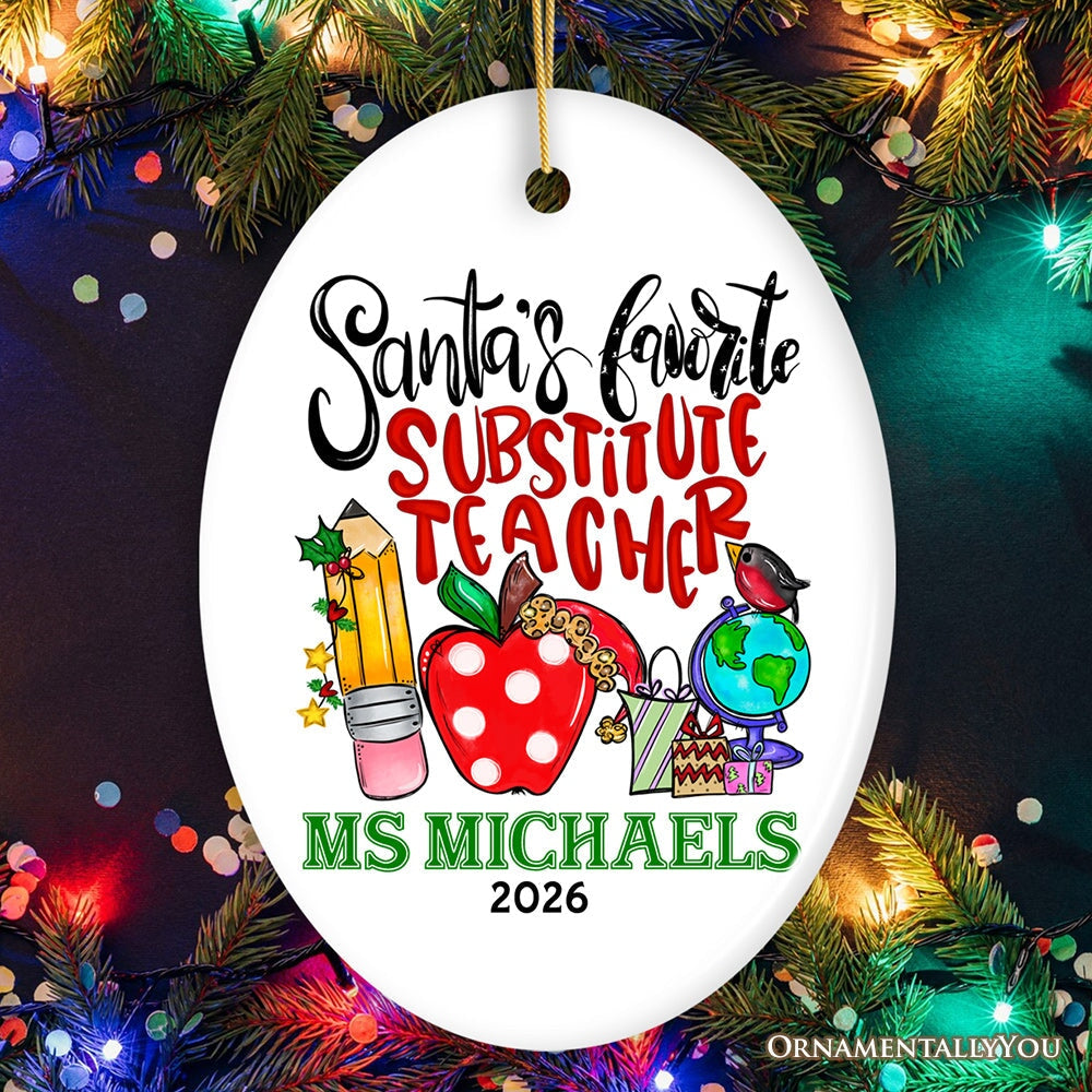Heartfelt Santa's Favorite Substitute Teacher Personalized Christmas Ornament, School Professor Appreciation Custom Gift