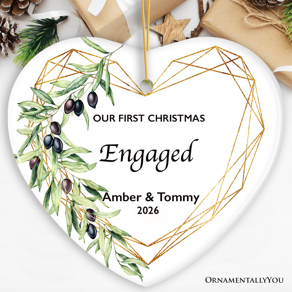 Our First Christmas Engaged Personalized Heart Ornament