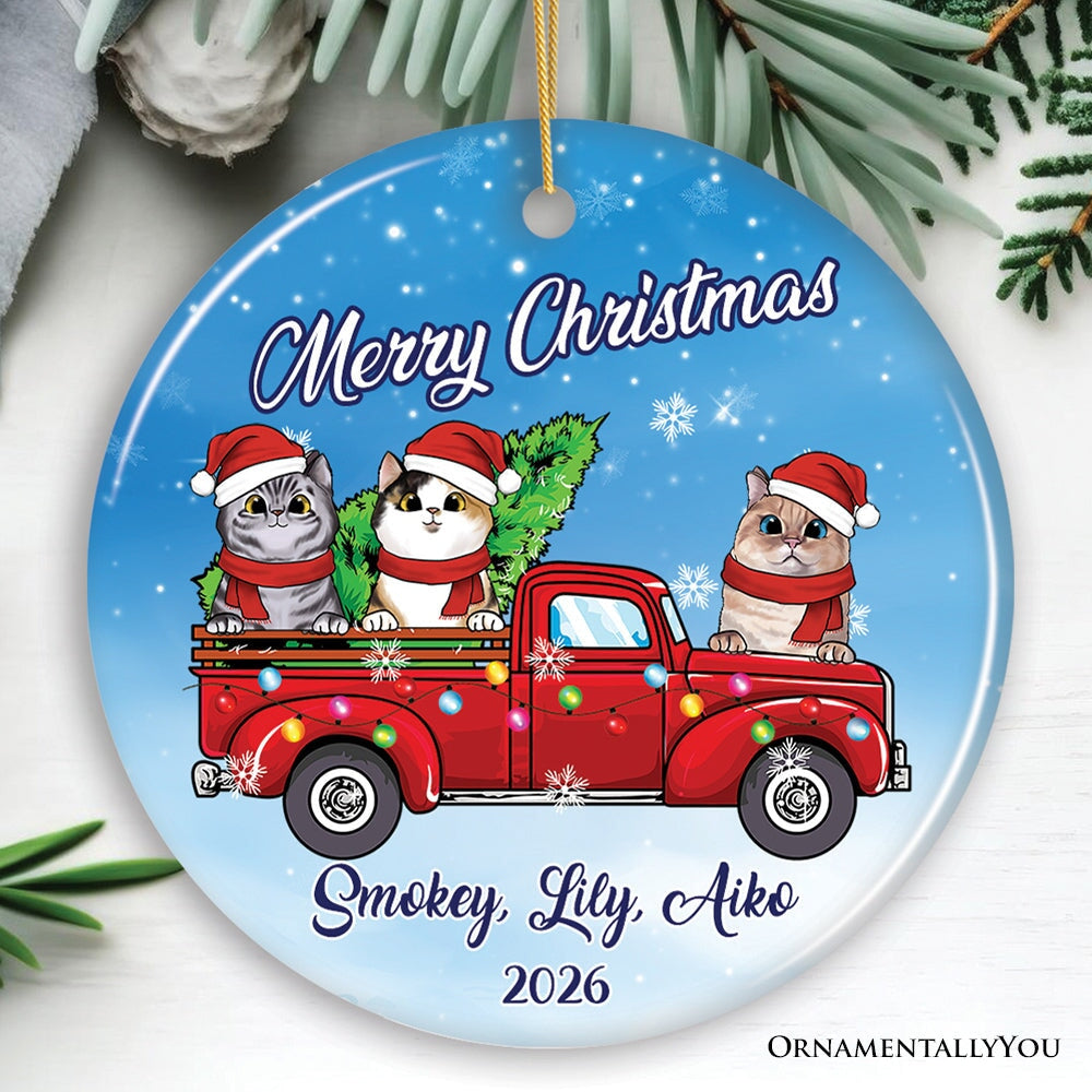 Personalized Christmas Cat Family Ornament, Up to Three Kittens with Names