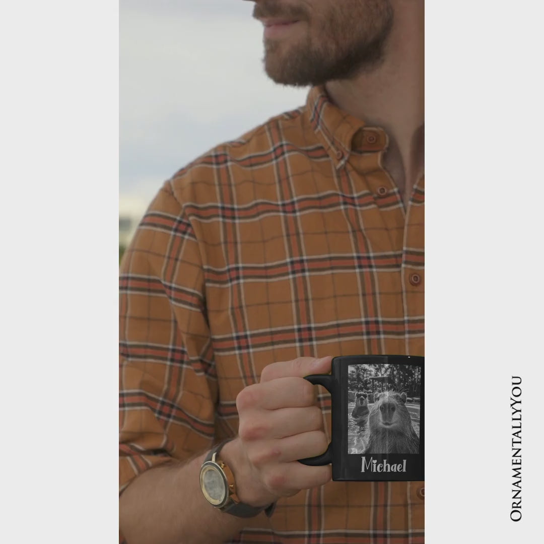 Capybara Selfie Funny Personalized Mug, Meme Animal Photo Style Gift with Custom Name