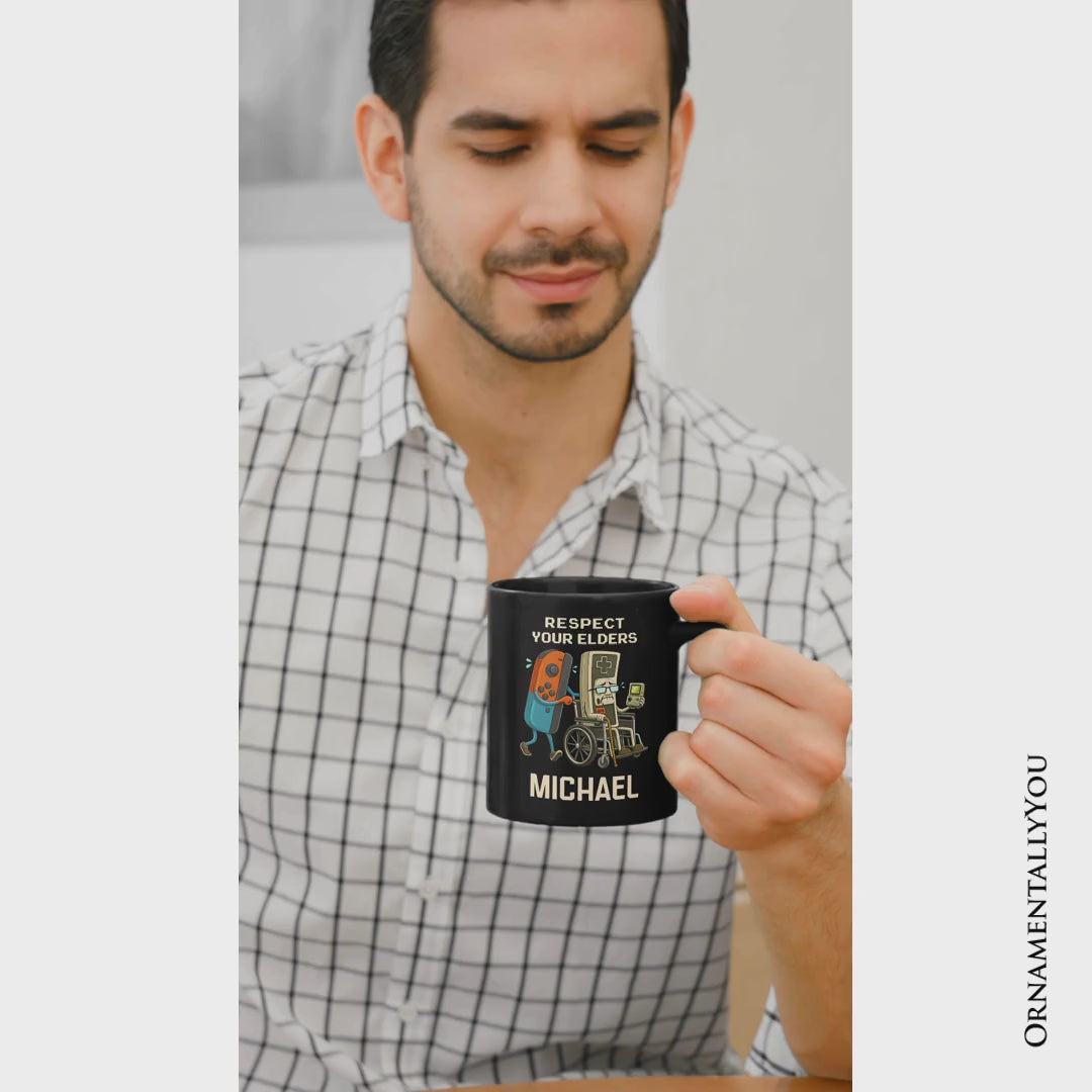Respect Your Elders Gaming Controller Personalized Mug, Old School Gamer Humor Gift with Custom Name