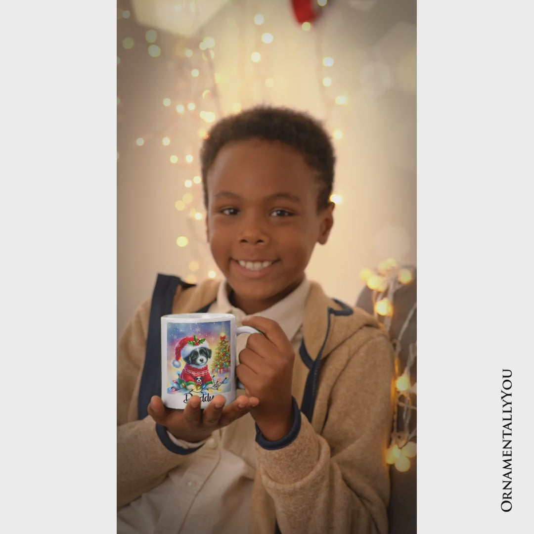 Whimsical Border Collie Puppy Personalized Mug, Adorable Holiday Gift with Custom Name