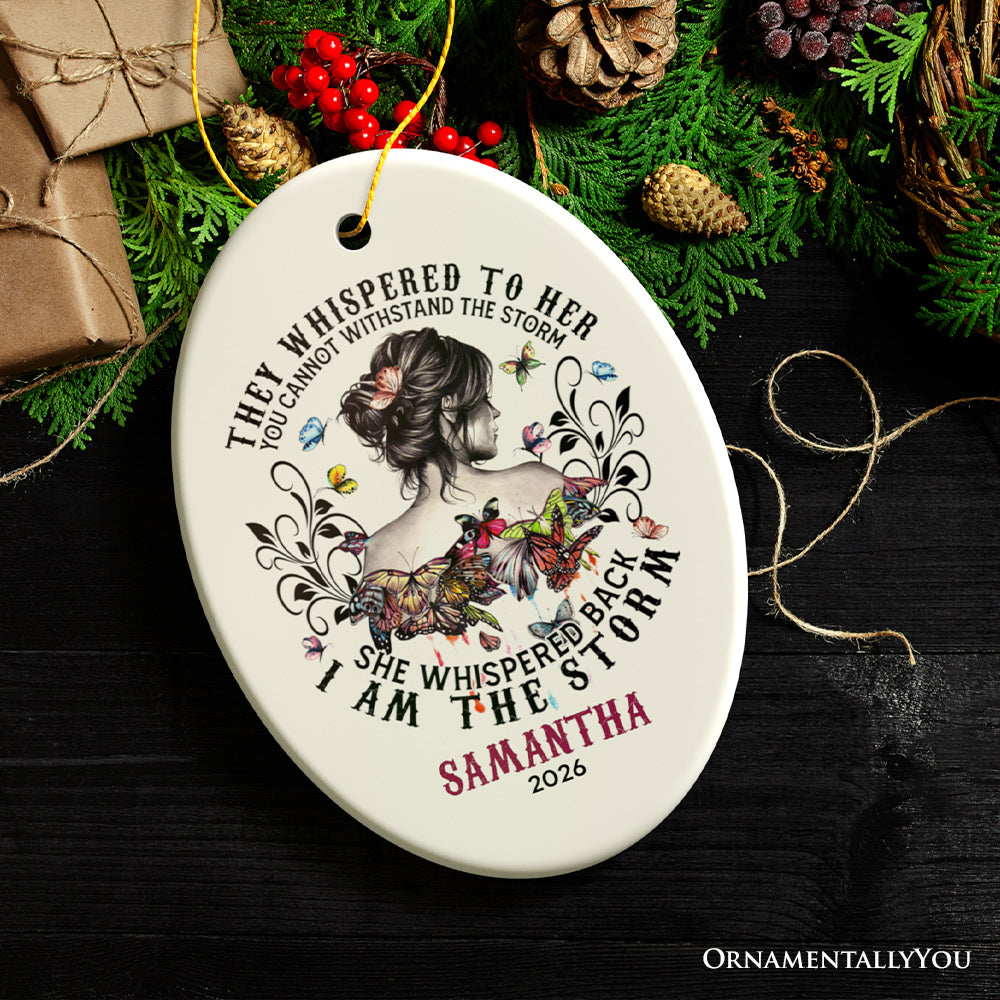 Artistic Feminine Customized Female Quote I am the Storm Ornament, Sassy Tattoo Gypsy Style Gift for Women and Girls