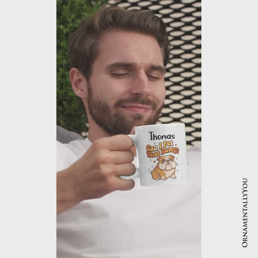 Can I Pet That Dawg Bulldog Retro Personalized Mug, Cute Funny Dog Lover Gift with Custom Name