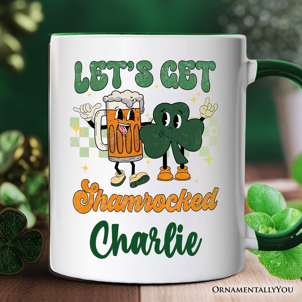 Let’s Get Shamrocked St Patrick’s Day Personalized Mug, Funny Beer and Clover Drinking Gift with Custom Name