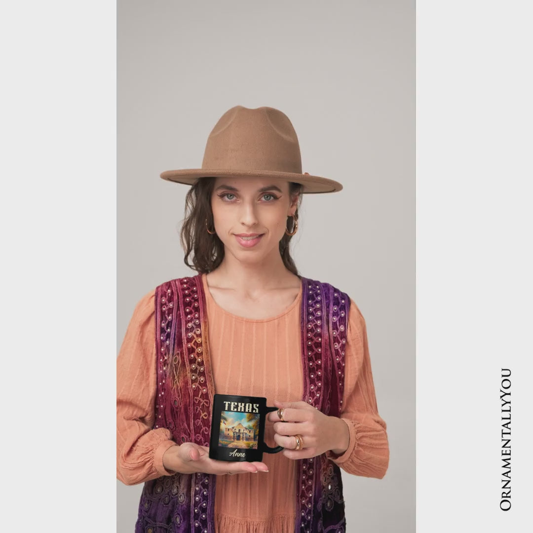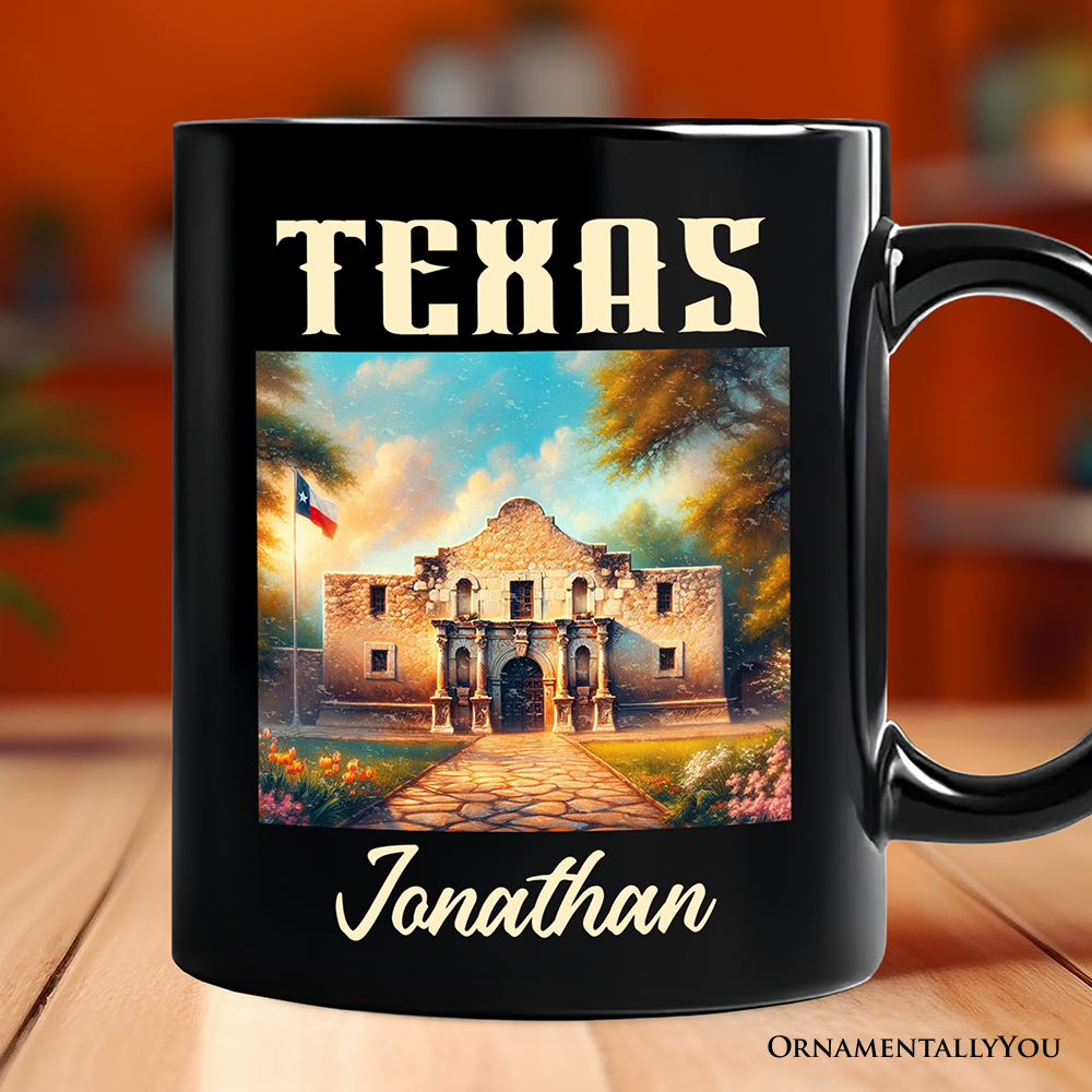 Rustic Texas State Alamo Personalized Mug, American Western Charm Gift and San Antonio Historical Souvenir with Custom Name