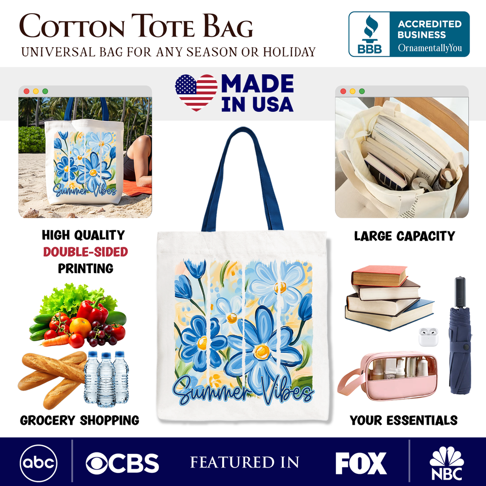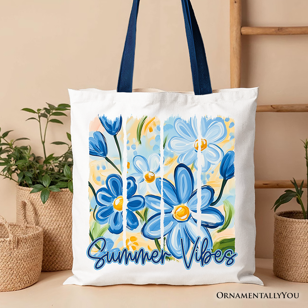 Summer Vibes Brushstroke Flowers Tote Bag, Aesthetic Gift Shopper