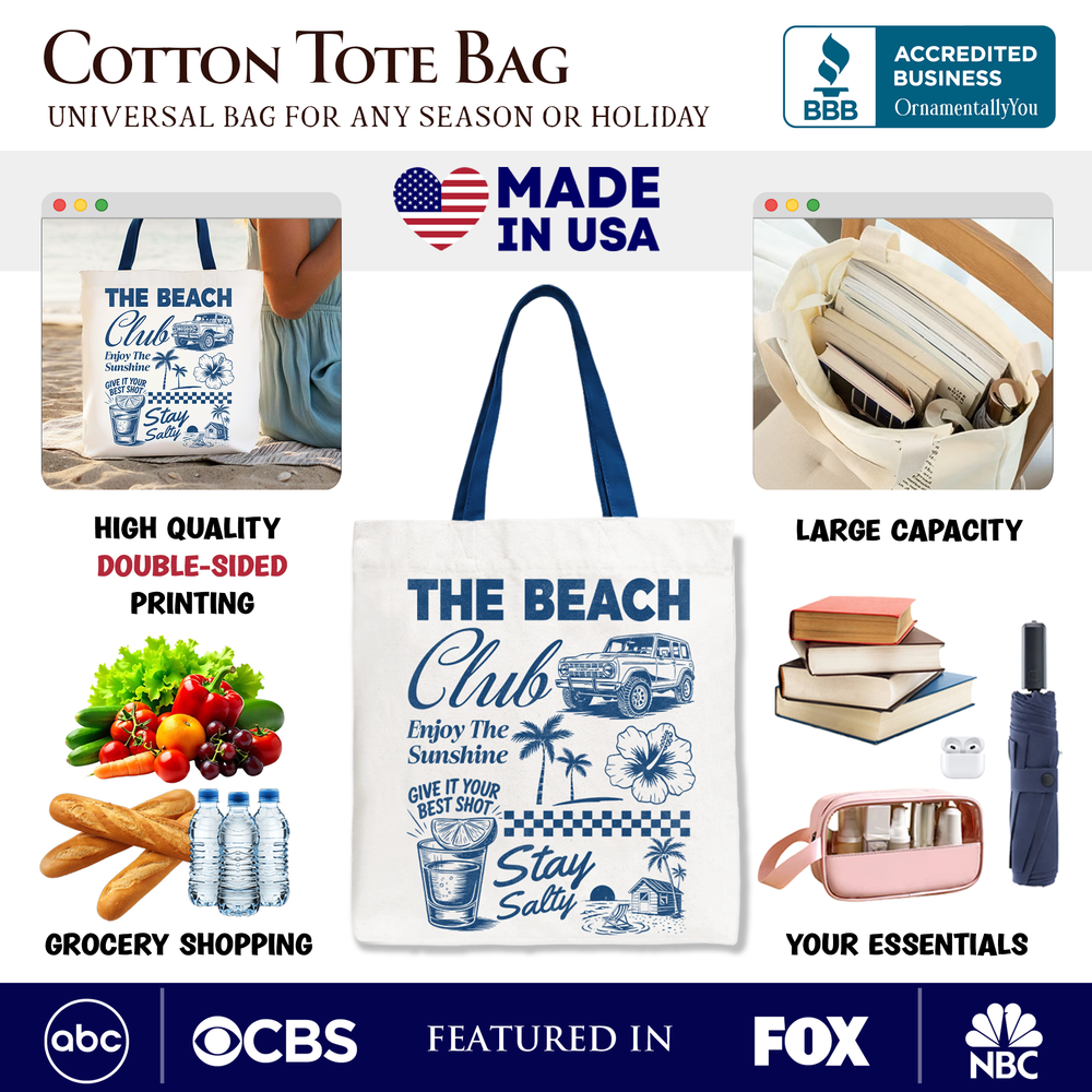Vintage Coastal Summer Vacation Tote Bag, The Beach Club Stay Salty Gift Shopper