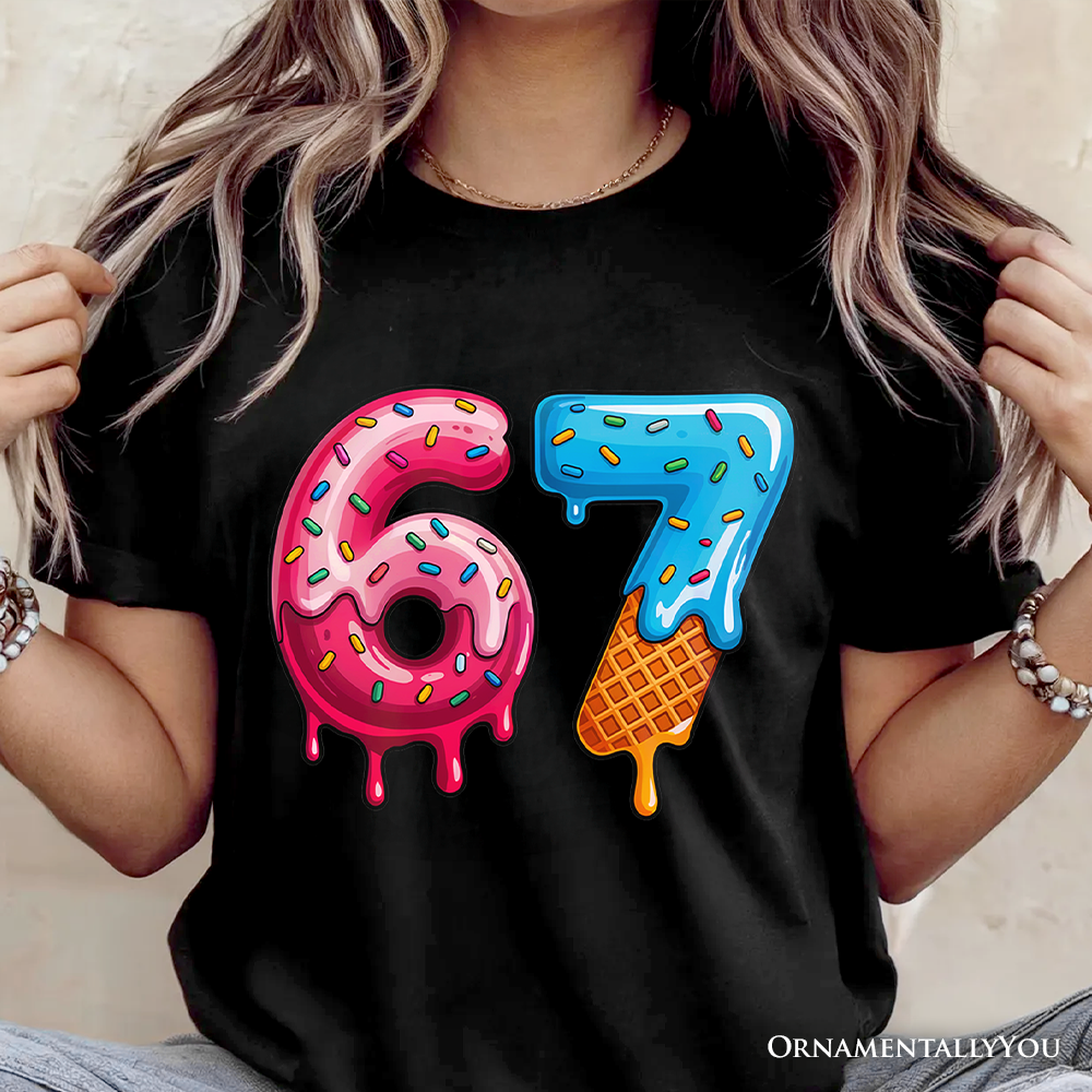 67 Ice Cream Drip T-Shirt, Six Seven Colorful Sprinkles Meme Tee