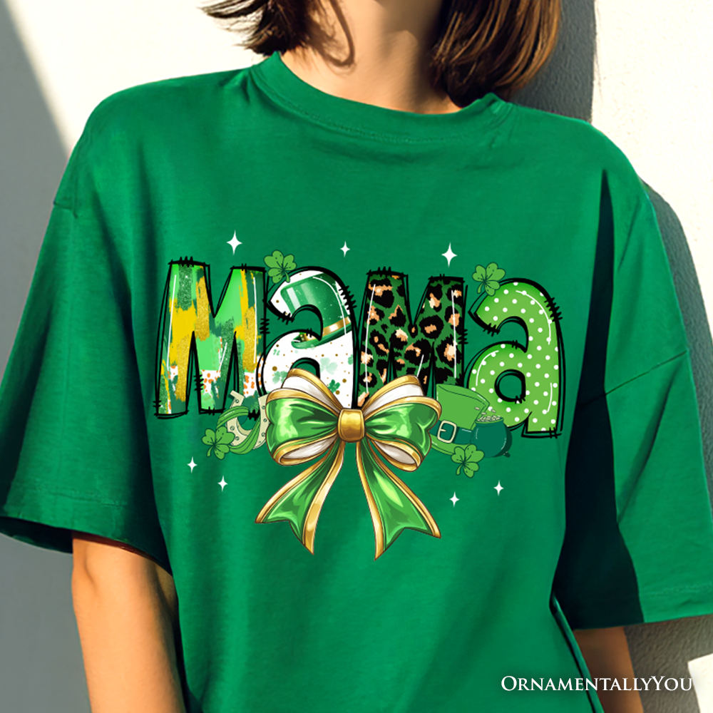 Coquette Mama Bow St Patrick’s Day T-Shirt, Green Lucky Shamrock Clover Tee