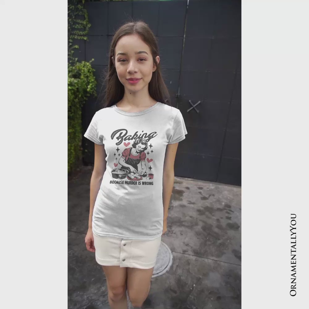 Baking Because Murder Is Wrong Anti-Valentine T-Shirt, Funny Retro Kitchen Tee