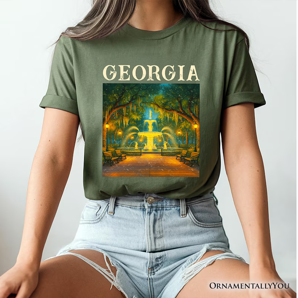 Charming Georgia State Forsyth Park T-Shirt, Savannah Landmark Tee and Southern Travel Souvenir