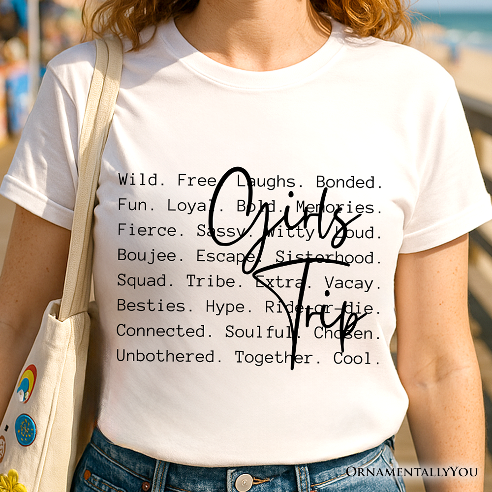Perfect for unforgettable getaways, this girls trip t-shirt is a must-have for best friends who love making travel memories together. Designed for vacations, bachelorette trips, weekend escapes, and group adventures, this stylish graphic tee pairs effortlessly with jeans, shorts, or lounge wear. Crafted for comfort and easy wear, itโs ideal for airport outfits, sightseeing days, beach strolls, and matching besties looks. Whether youโre capturing Instagram moments or relaxing with your crew, this trendy girls vacation shirt adds fun, friendship vibes to every trip โ๏ธ๐ญ๐๐