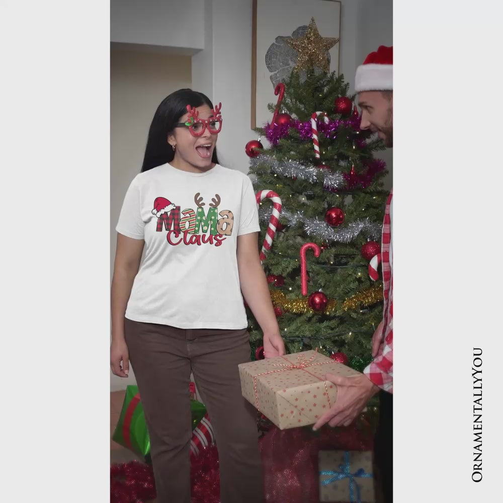 Mama Claus Retro Christmas T-Shirt, Matching Family Holiday Tee