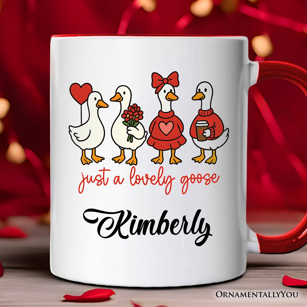 Just a Lovely Goose Personalized Mug, Coquette Valentine Cute Love Gift with Custom Name