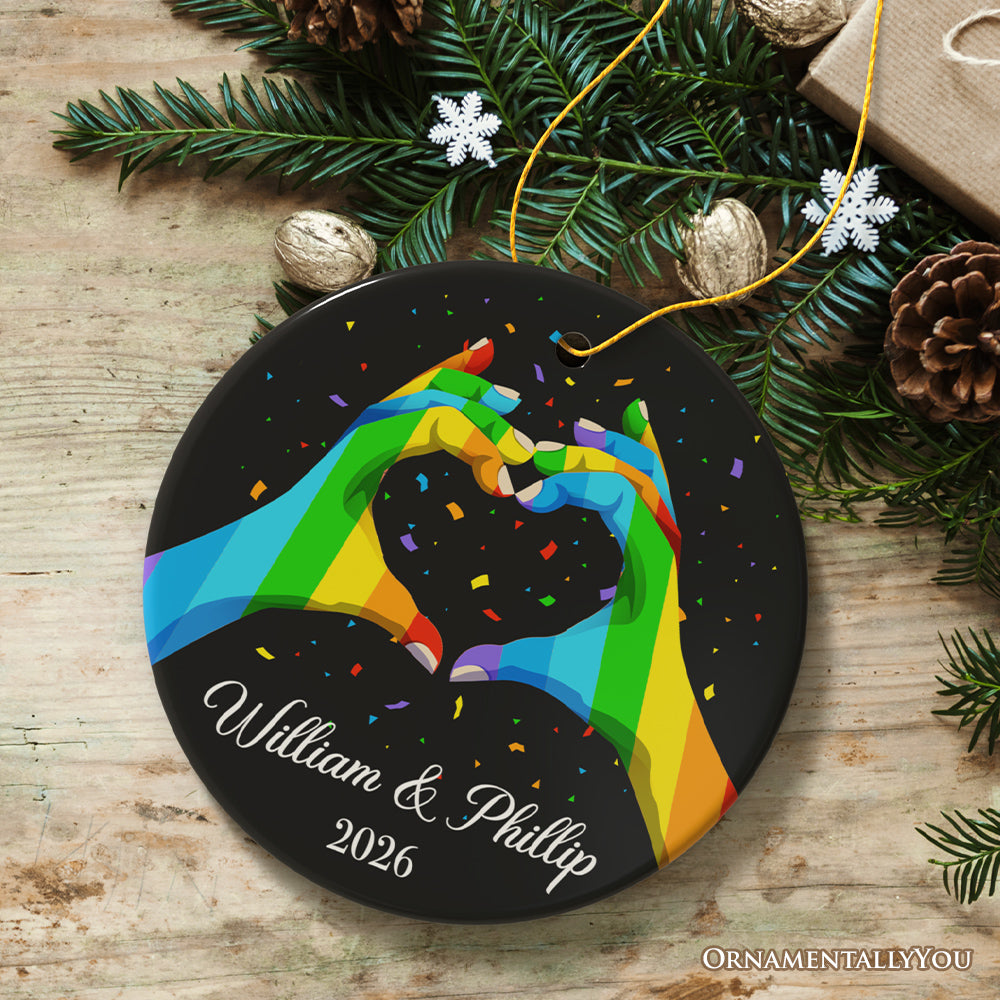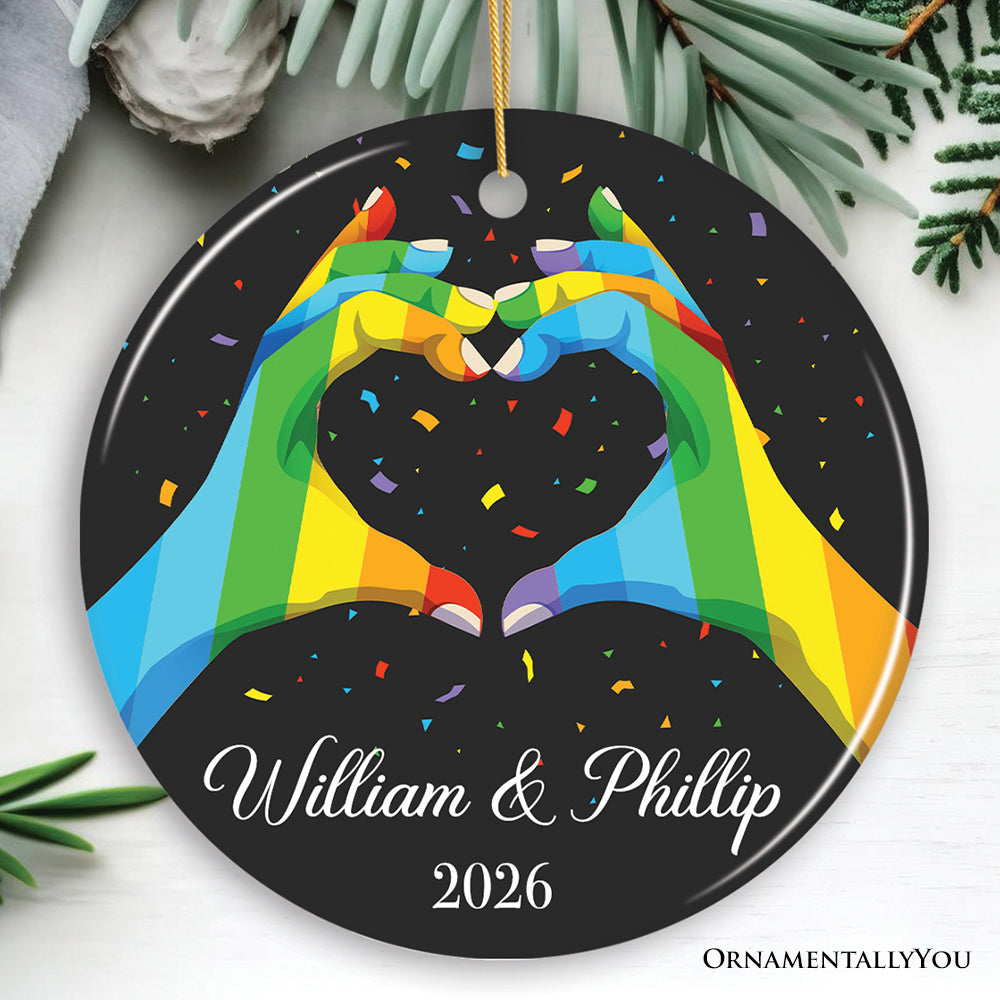 LGBT Personalized Loverโs Heart Hands Ornament, Custom Gay Couples Gift