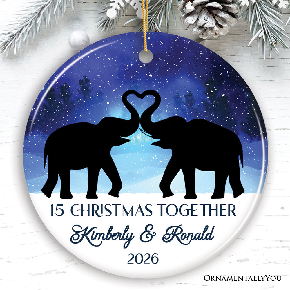 Majestic Elephant Anniversary Personalized Gift for Couple, Romantic Christmas Ornament, Xmas Together Keepsake Gift