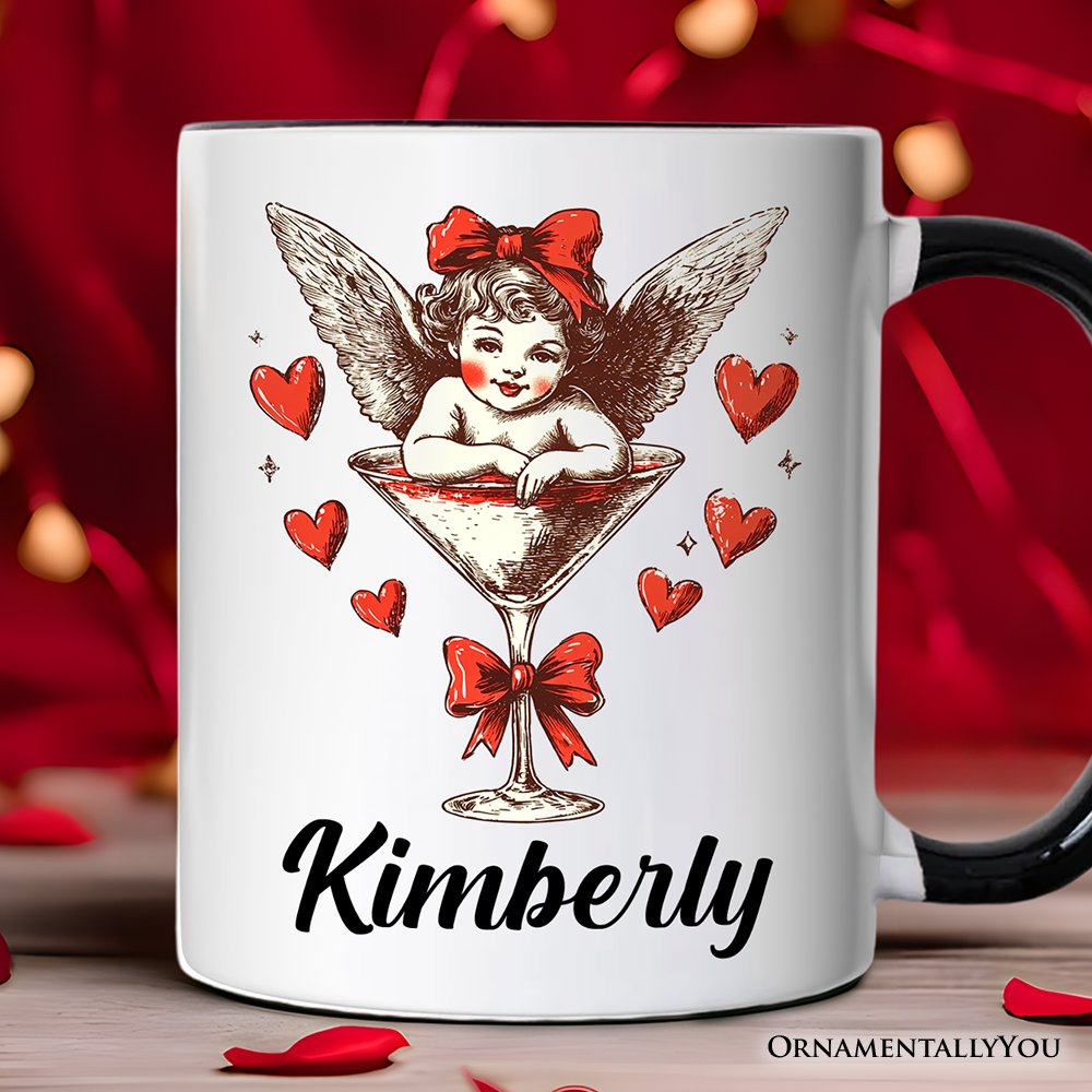 Retro Coquette Cupid Valentine Personalized Mug, Galentine Gift with Custom Name