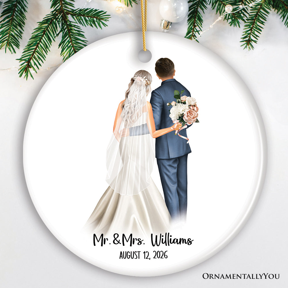 Elegant Wedding Bride and Groom Personalized Ornament, Marriage Ceremony Customized Gift