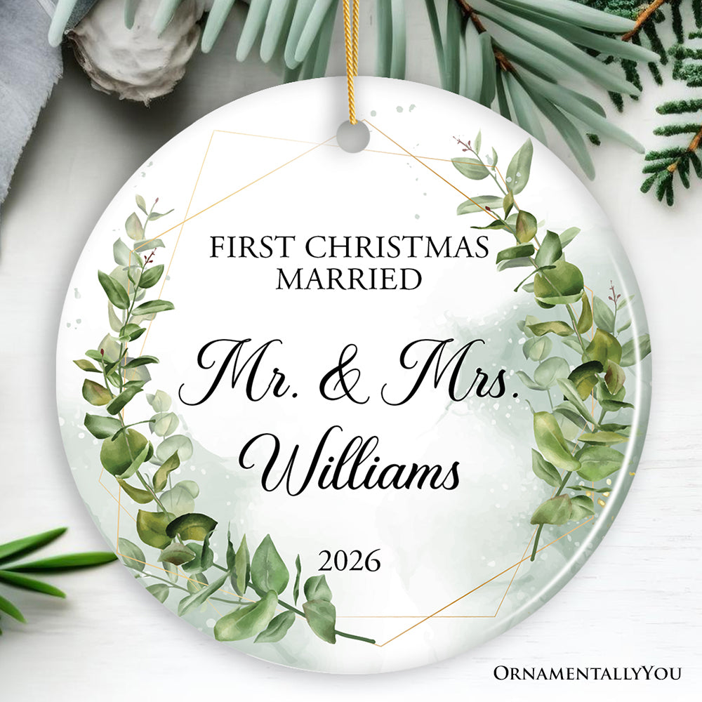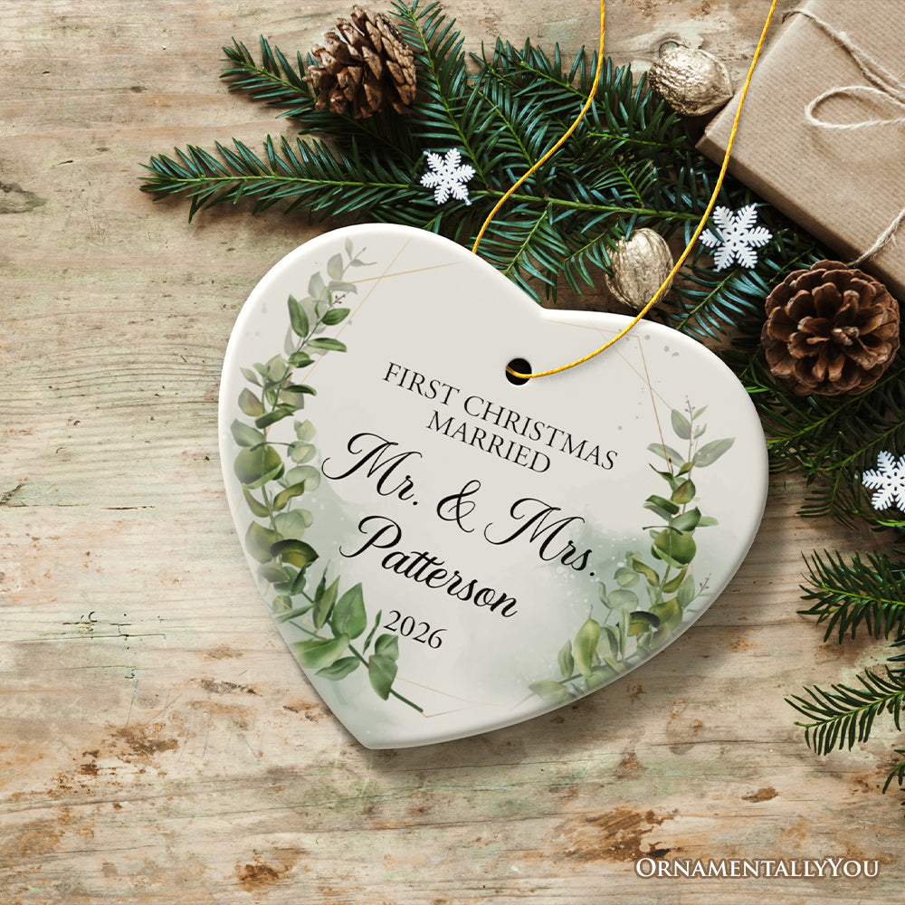 Personalized First Christmas Married as Mr and Mrs Ornament, Elegant Gift with Custom Last Name