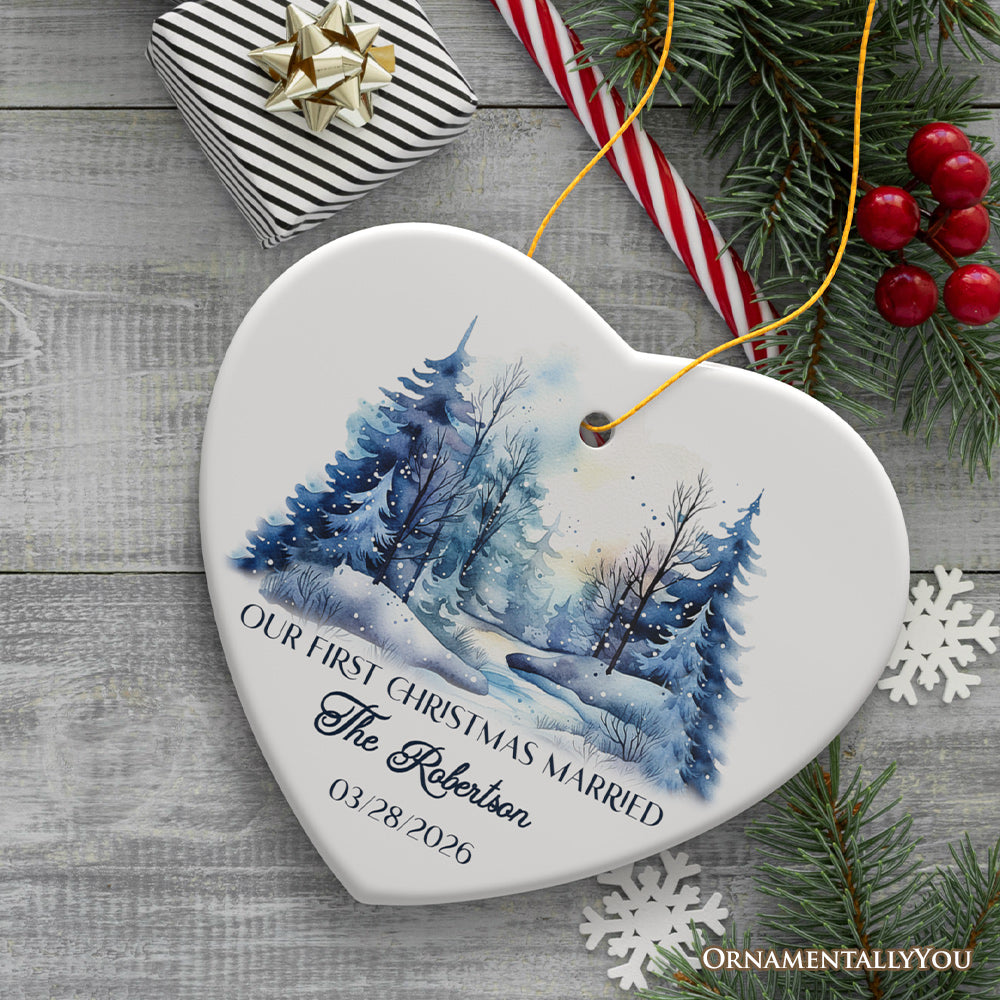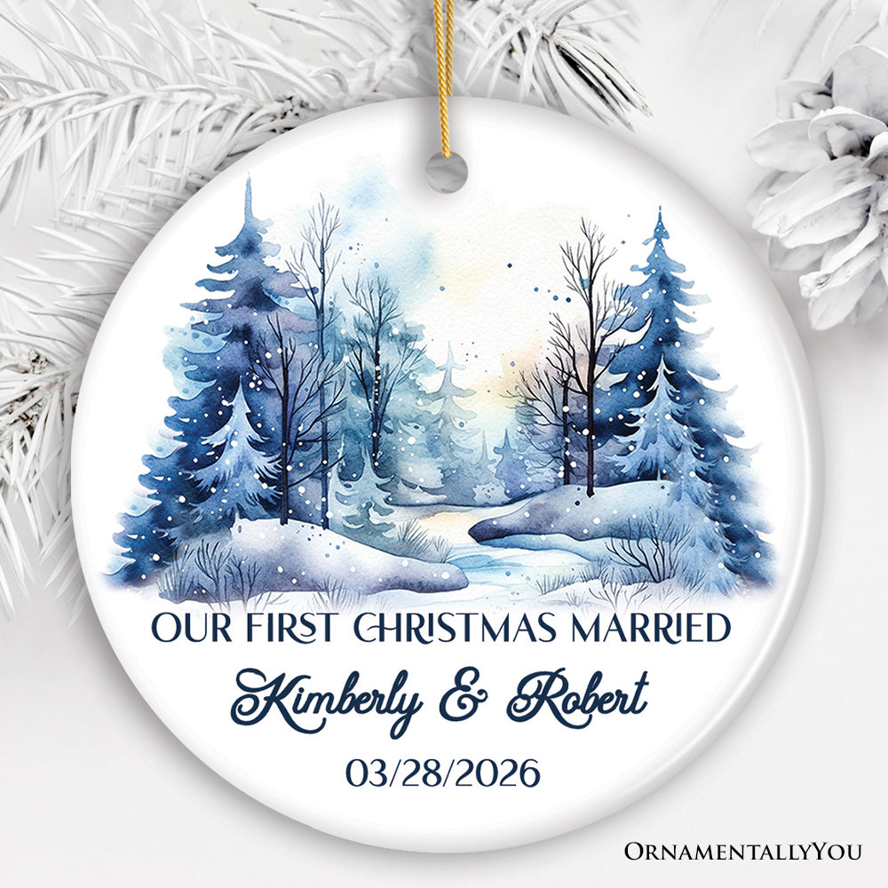 Winter Wonderland Forest Personalize Ornament, First Christmas Married Couple Gift