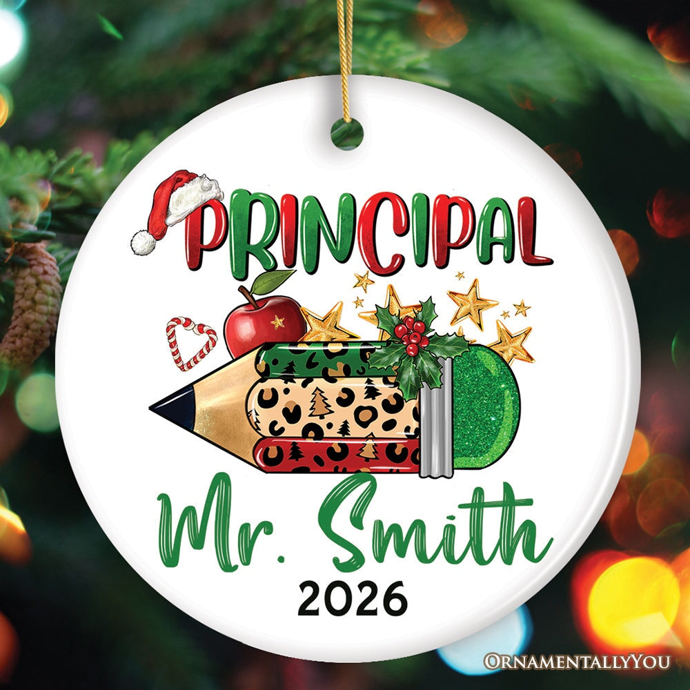 Holiday Pencil Art Personalized School Principal Christmas Ornament