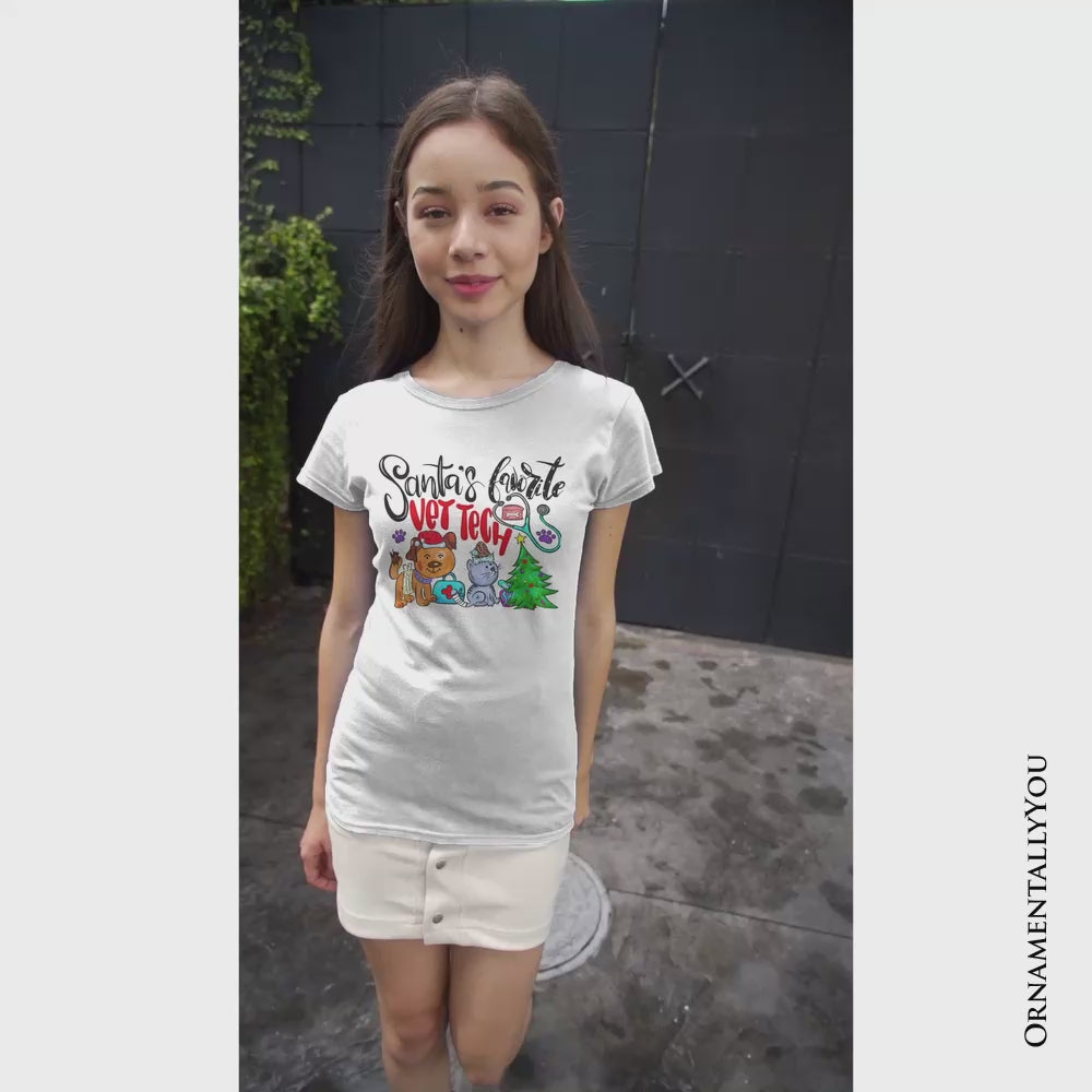 Santa’s Favorite Vet Tech Christmas T-Shirt, Festive Holiday Veterinary Tee