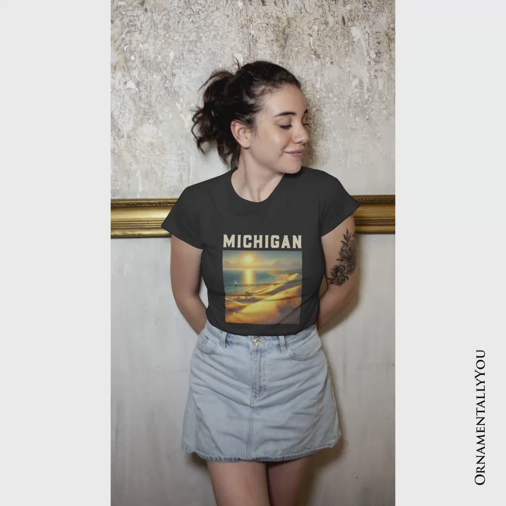 Experience the magic of Michigan’s breathtaking shoreline with this soft and stylish graphic tee 🌅 Perfect for outdoor lovers, this Great Lakes–inspired shirt captures the iconic Sleeping Bear Dunes and tranquil coastal sunset vibes 🏖️ Whether you’re exploring Lake Michigan trails, lounging by the water, or searching for a unique Michigan souvenir, this comfy t-shirt makes a timeless keepsake for travelers, beachgoers, and nature enthusiasts alike 🌲✨