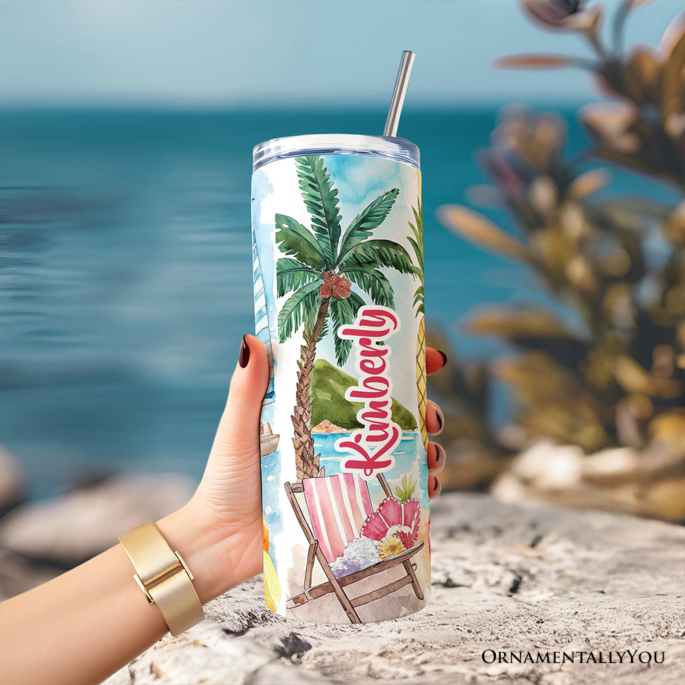 Bright, playful, and bursting with sunshine energy, this tropical summer skinny tumbler captures everything we love about beach days and carefree vacations. With colorful coastal vibes and fun island-inspired details, it radiates poolside relaxation, fruity drinks, and warm ocean breezes. Perfect for beach lovers, summer travelers, girls’ trips, and anyone who lives for sunshine season, this cheerful design brings instant getaway mood to your everyday routine. Fresh, vibrant, and full of tropical charm, it’s your daily reminder that life’s better in flip-flops.