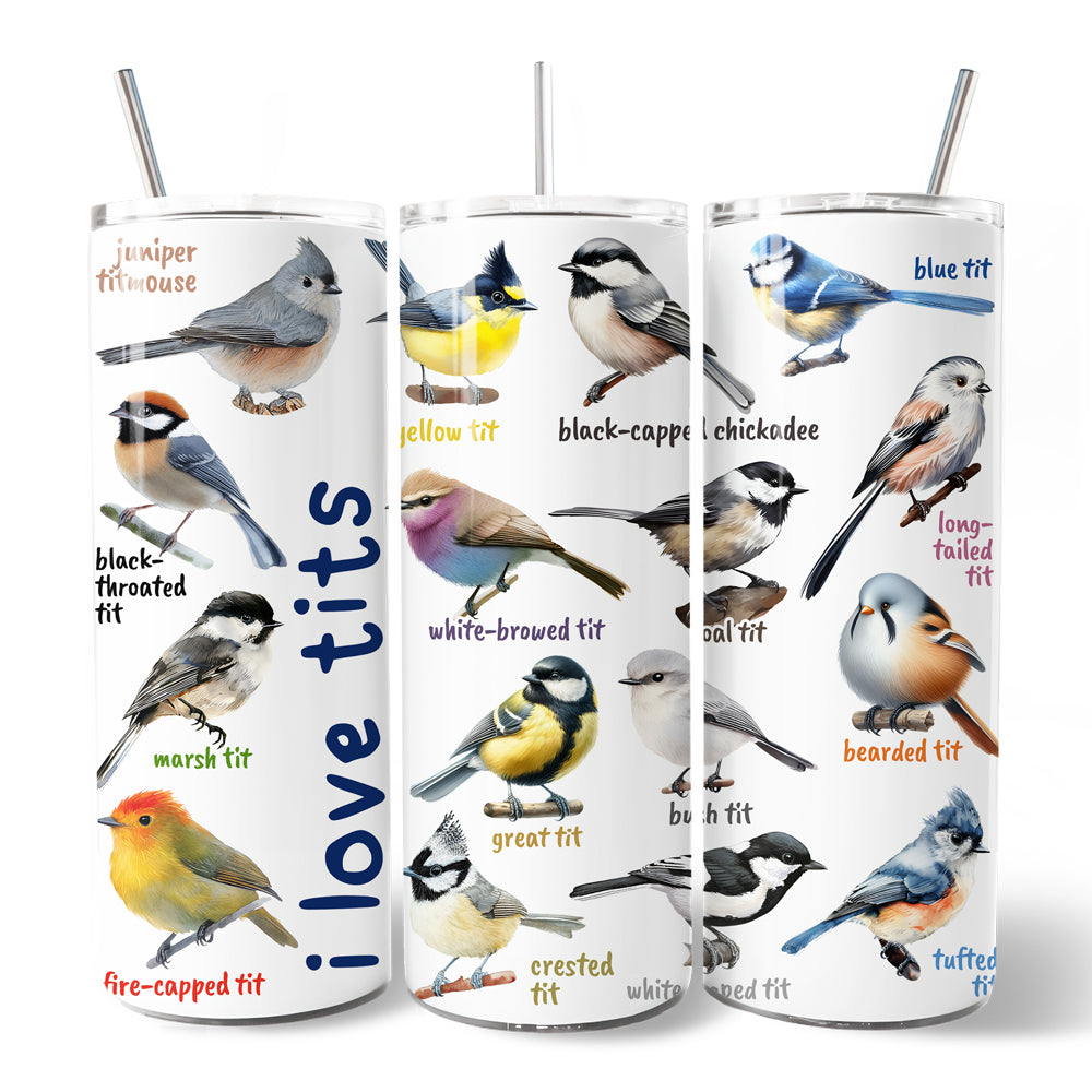 Colorful, educational, and full of backyard charm, this “I Love Tits” bird-themed skinny tumbler is a playful nod to birdwatching enthusiasts and nature lovers alike. Featuring beautifully illustrated tit species in vibrant detail, it blends humor with ornithology in a way that’s clever, eye-catching, and conversation-starting. Perfect for birders, wildlife lovers, hikers, and outdoor adventurers, this nature-inspired drinkware celebrates feathered favorites while adding personality to your daily routine. Fun, unique, and packed with avian charm, it’s a must-have for anyone whose happy place includes binoculars and birdsong.